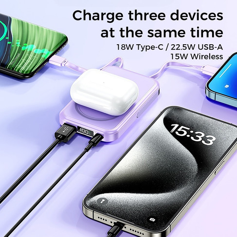 Imagine never having to deal with cables again. With magnetic wireless charging, you simply place your device on the power bank, and it starts charging. This ease saves you time and frustration, allowing you to charge your device in any setting—whether at a park, a café, or during your travels.